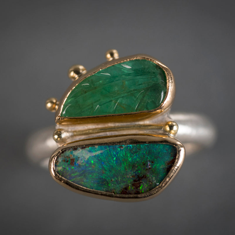 Aurora Emerald & Boulder Opal Ring - Size 6 1/2
